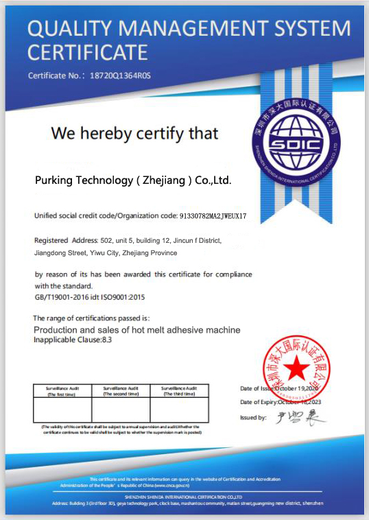 Purking टेक्नोलोजी (झेजियांग) कं, लिमिटेड२०१ 2014 मा स्थापित भएको हो, यो एक पेशेवर तातो पग्लिhes Adhesivemachine कम्पनी हो जसले एकीकृत अनुसन्धान, विकास, मार्केटि,, कर्तव्यनिष्ठा र बिक्री पछि सेवा, कम्पनीको १००० भन्दा बढी वर्गमिटर भवन छ। कम्पनीको बिक्री मुख्यालय Yiwu शहर, Zhejiang प्रान्त मा अवस्थित छ। उत्पादन र असेंबली केन्द्र अवस्थित ड Dong्गगुआन शहर, गुआंग्डोंग प्रान्तमा छ। |